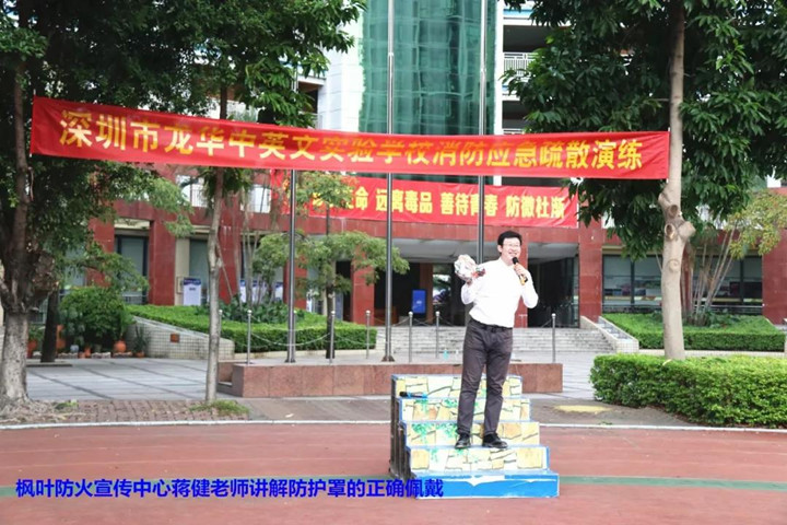 演練前,我校組織召開了消防演練會議,明確了所有崗位人員職責;各班班主任對學生進行消防安全知識培訓,明白消防演練的目的。演練時,深圳市楓葉防火宣傳中心講師蔣健老師強調了住宿生使用電器設備安全、逃生時下樓梯注意事項、防火面罩的正確使用等安全知識。演練后,安全辦蔣明輝主任對本次活動進行了總結,蔣主任告訴大家在災難來臨時最大的危害是心理恐慌,只要大家在校園內發生突發事件時保持冷靜、有序,不恐慌、不尖叫、不起哄、不擁擠,上下樓梯靠右走,就可以最大限度減少事故。