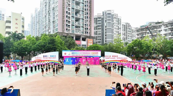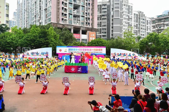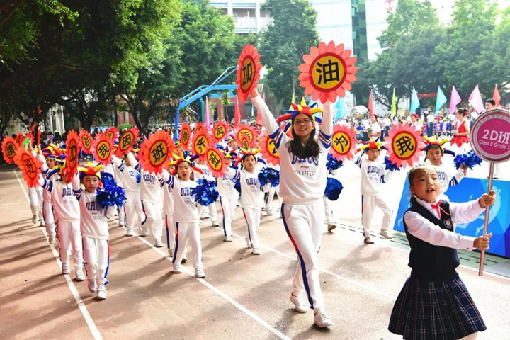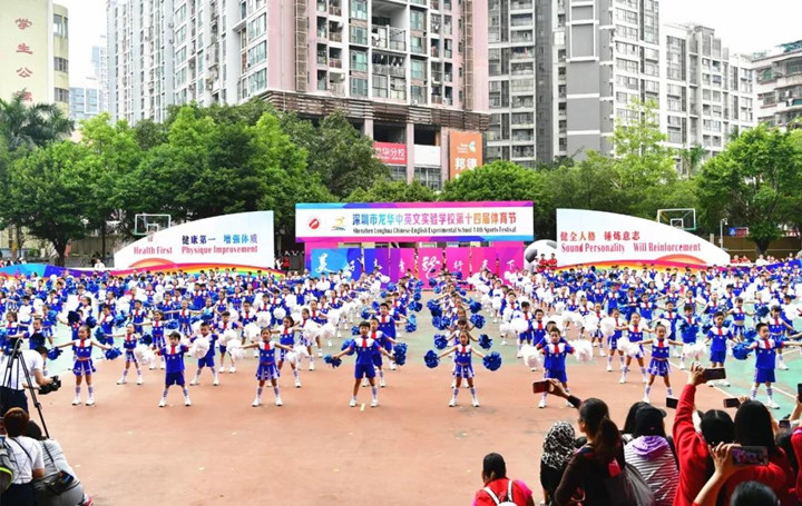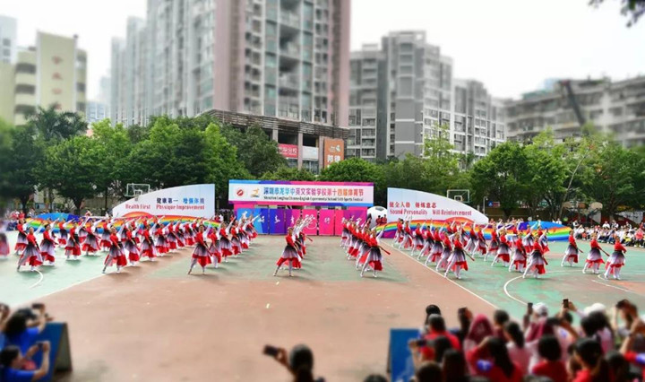 時間: 2019-01-03 作者:龍華中英文實驗學校 閱讀次數: 30922018年12月5日上午,深圳市龍華中英文實驗學校運動場上彩旗飄舞,樂聲悠揚,充滿勃勃生機。學校第14屆體育節在這“健康、成長、快樂”的主旋律中隆重開幕。參加本次活動的有區體育教研員隋海林老師,集團研究院常務副院長、總校校長畢國軍博士,結對學校龍華中學、新華中學有關領導,駐區有關單位領導,集團各有關部門、學校、幼兒園領導,以及各年級學生家長。
