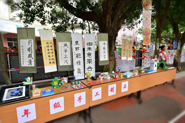體育節開幕的同時,體現孩子們全面發展素養的作品和成果展也同時進行。有豐富多彩的學科作品,有精巧精美的手工作品,有極具中華文化特色的書法及布藝作品,有富有創造力的創客作品等,碩果累累、琳瑯滿目。特別是各展區的小解說員如數家珍般的講解引得家長、來賓競相拍照,紛紛點贊!