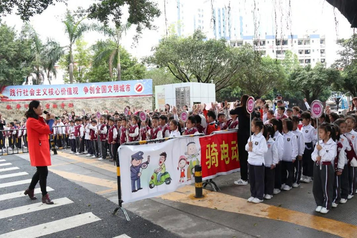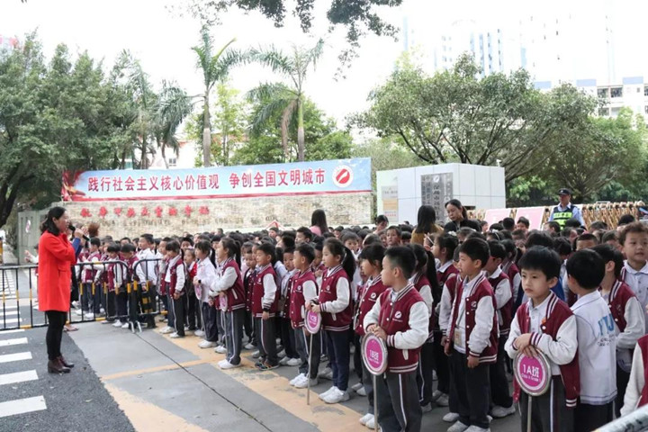 一年級各班同學在班主任的帶領下開展交通安全活動
