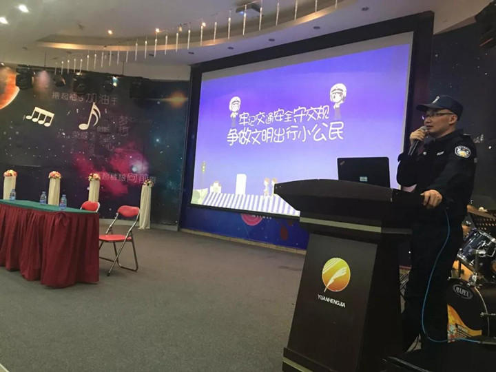 接著唐警官針對小學生的年齡特點,結合現階段的交通現狀及一些行人、非機動車輛交通事故的案例進行分析,提醒師生家長要時刻注意交通安全,遵守交通信號燈,不在馬路上追逐打鬧,不乘坐超員車輛,杜絕交通陋習,牢固樹立交通法規意識。并倡導同學們做一名文明的交通參與者,從小樹立遵章守法、安全出行的思想觀念。