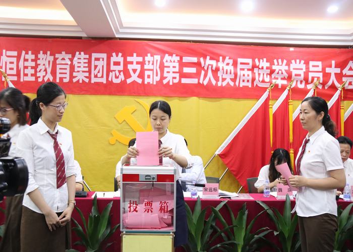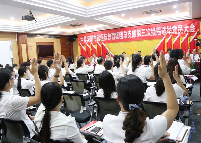 本次換屆選舉工作嚴(yán)格按照《中國共產(chǎn)黨章程》《中國共產(chǎn)黨基層組織選舉工作暫行條例》以及有關(guān)規(guī)定進行。在雄壯的國歌聲中,集團黨總支部換屆選舉大會正式拉開序幕。會議嚴(yán)格按照各項議程進行。首先由龍華區(qū)委教育工委辦魯慶主任宣讀《中共深圳市龍華區(qū)委教育工作委員會關(guān)于同意深圳市遠恒佳教育集團總支部委員候選人預(yù)備人選的批復(fù)》文件。