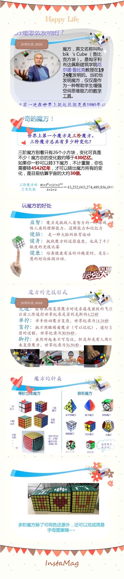 “小手擰擰擰、思維轉轉轉”本學期的百人團魔方大賽,共有110名選手入圍,在歷經7輪比賽后,有4名同學脫穎而出,摘得本次魔方大賽貴冠:肖宇宏榮獲冠軍,朱哿俊榮獲亞軍,肖雨彤、譚佳樂榮獲季軍。