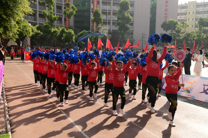 首先進(jìn)行的是隊列式表演,在鮮艷的五星紅旗引領(lǐng)下,會旗、會徽、鮮花隊、紅旗隊,以及裁判員隊、家長義工隊、小學(xué)、初中、高中等近80個方陣整齊入場。各方陣隊伍步伐矯健、精神抖擻、口號嘹亮;師生家長面帶笑容、充滿陽光、充滿自信;入場式走出了氣勢,走出了風(fēng)采,贏得了家長與來賓的掌聲和喝彩。