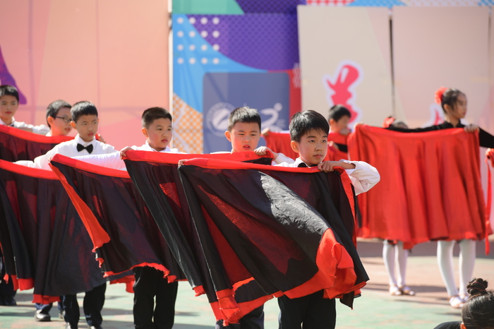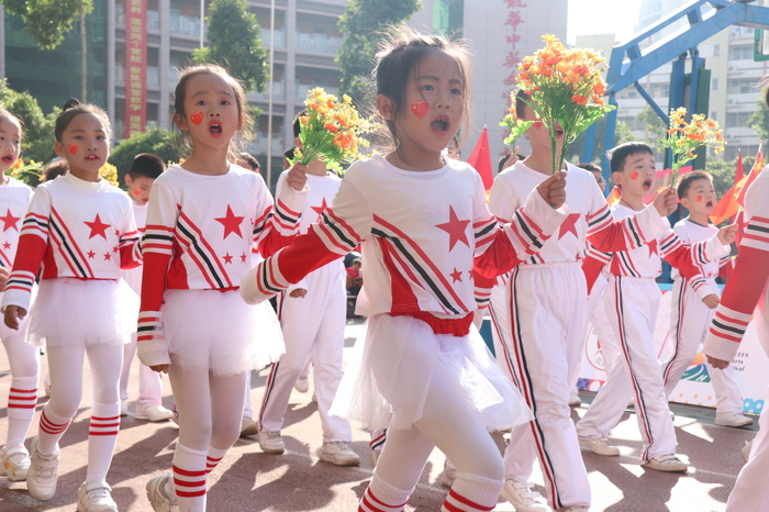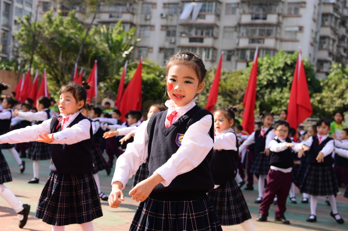 小學(xué)部的旗舞《旗開得勝》表達(dá)了為祖國驕傲和自豪的情感。小學(xué)部在本學(xué)期科技節(jié)里創(chuàng)新創(chuàng)造、在讀書月暢讀和徜徉、在學(xué)科周拓展和提升。通過二年級小學(xué)生的表演,表達(dá)了同學(xué)們定能旗開得勝,成就“中華少年強”的美好期待。