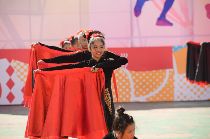 學(xué)生開幕式表演在大型團(tuán)體操《我們都是追夢人》中拉開帷幕。全校小學(xué)、初中、高中以及學(xué)生家長代表等近3500人分別參加了繩操、校園旗舞、拉丁舞、手語舞、跆拳道、花樣籃球操、歌舞等大型節(jié)目演出,全面展示了本學(xué)期“一體兩翼”特色背景下體育、藝術(shù)教學(xué)改革及“2+2”項目實施的成果。學(xué)生大型才藝表演在《我和我的祖國》歌舞表演中結(jié)束,參與表演師生用甜美的歌聲、優(yōu)美的舞蹈表達(dá)了對祖國的熱愛,充分展現(xiàn)我校立德樹人、五育并舉的良好育人成效。整場表演場面弘大、形式多樣、內(nèi)容充實,讓人目不暇接、回味無盡。