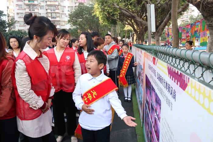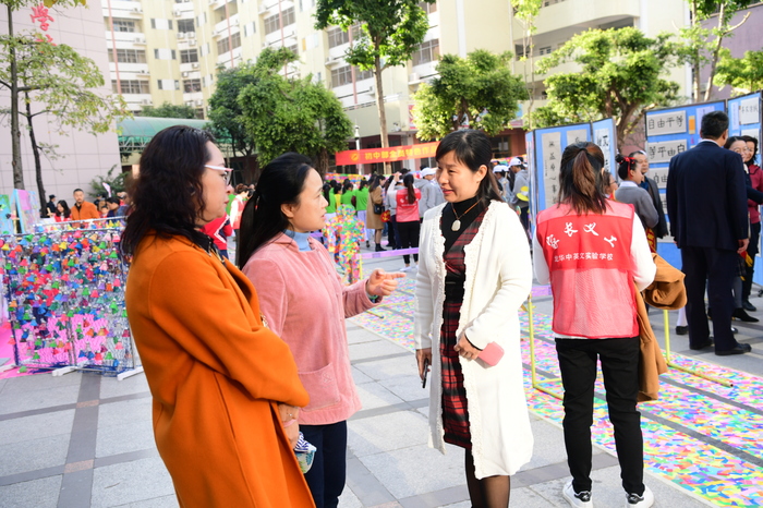 在第15屆體育節(jié)開幕之際,還同步展出了學(xué)校、學(xué)部及孩子們的文化建設(shè)、活動開展、學(xué)科建設(shè)、科技創(chuàng)客及手工制作等方面的作品和成果。在運動場周邊分四個展區(qū)進(jìn)行展示,前來參加開幕式的近100名來賓、領(lǐng)導(dǎo)、家委成員等,在小解說員的帶領(lǐng)下,一邊觀看作品,一邊娓娓解說,成為體育節(jié)一道靚麗的風(fēng)景。