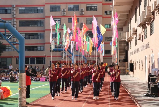 最后,張丹書記宣布運動會開幕,在禮炮彩帶飛揚中,公明中英文學校第20屆校運動拉開帷幕預祝為期兩天的運動會取得圓滿成功!
