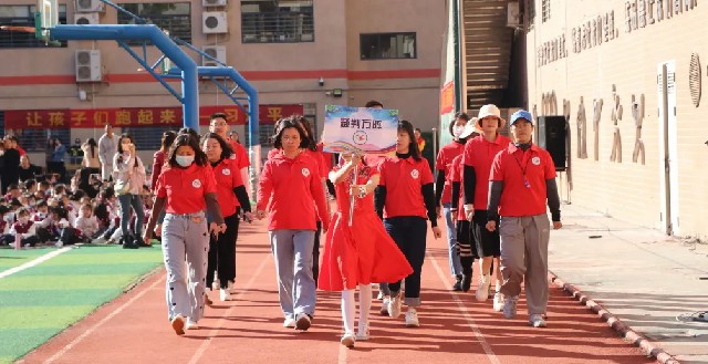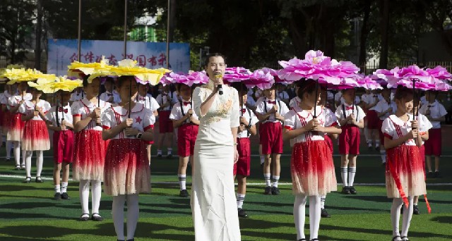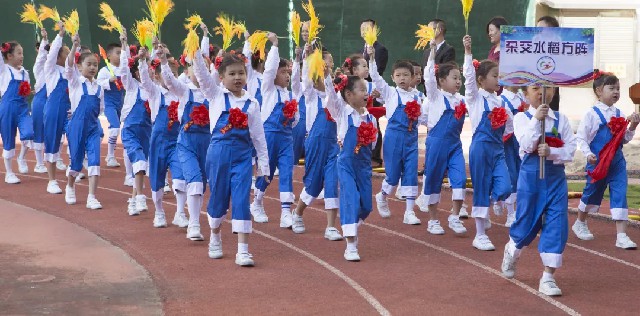 隨著運動員入場完畢,伴著悠揚的音樂,五年級學生手持彩花歡快入場,大型歌伴舞《歌唱共產黨》、《心愿》為全體師生獻上了一場美侖美奐的視聽盛宴,歌聲悠揚、場面壯觀,參演師生飽含深情表達對祖國的熱愛之情。花樣跳繩、激情拉丁舞以及啦啦操特色表演輪番登場,跳繩中的高難動作、拉丁舞的激情奔放、啦啦操中的優美組合,瞬時點燃全場熱情,在同學們的陣陣歡呼中整個校園成了歡樂的海洋。
