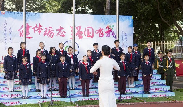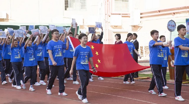 隨后,各年級方陣依次進場,一年級兩彈一星方陣、二年級雜交水稻方陣、四年級神舟飛船方陣、六年級奧運方陣、七年級深圳科技方陣、八年級建黨百年方陣……,一張張面孔稚嫩堅定、一個個方陣寓意深遠。青史如鏡,鑒照崢嶸歲月;初心如炬,輝映復興之路, 百年來,中國共產黨帶領中華民族從站起來、富起來到強起來,從改革開放和社會主義現代化建設新時期的解放思想、銳意進取,到中國特色社會主義新時代的自信自強、守正創新。夢想照進現實,只因奮斗從未停歇,只因夢想永不止步。