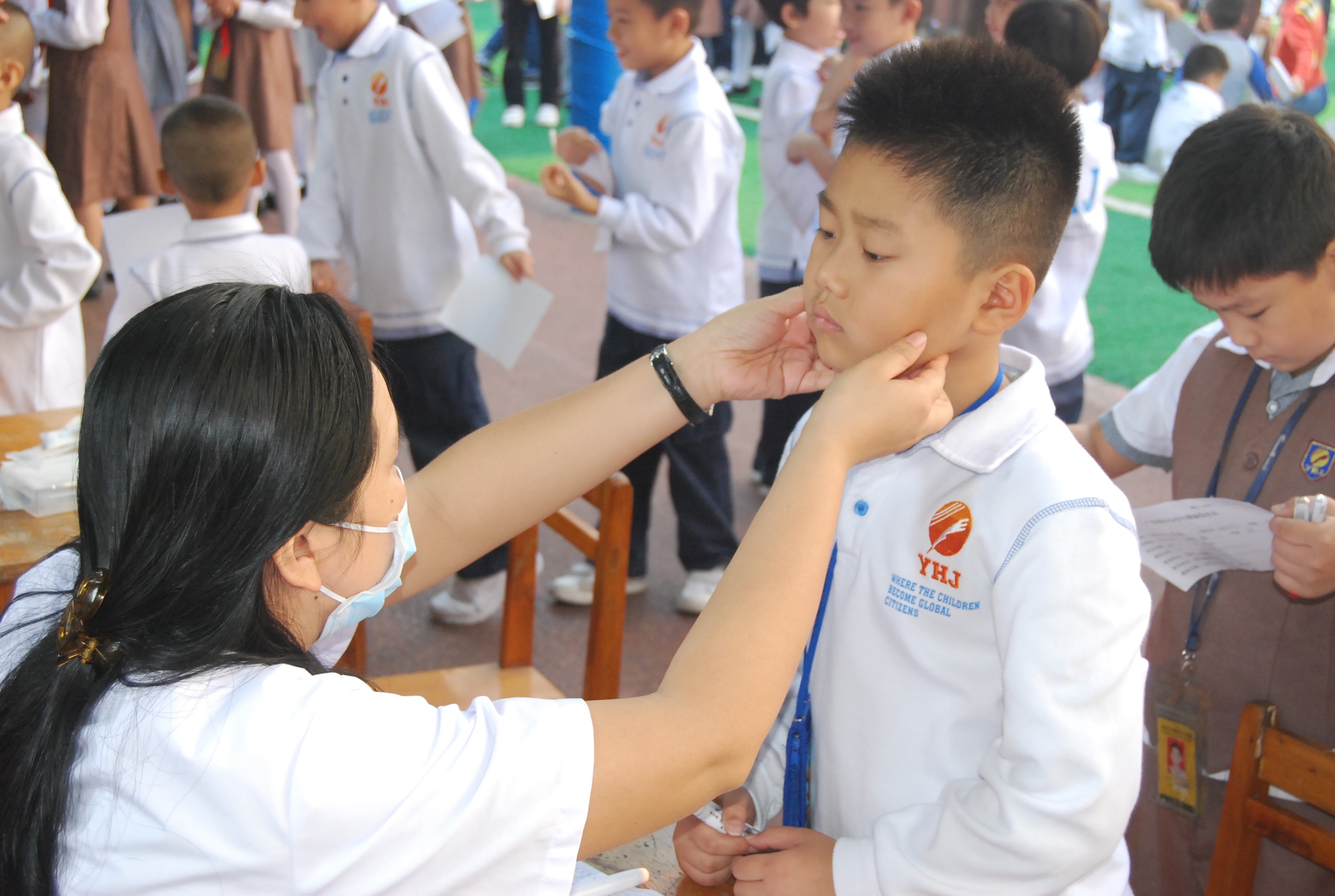 學生在班主任和任課老師的帶領下,有序地進行各項檢查。本次體檢內容包括身高、體重、視力、色覺、內科、血常規、血壓和生長發育等項目。醫務人員對每個學生進行了認真細致地體檢,對體檢的結果作了詳細記錄,同時還向一些學生提出了有針對性的合理保健意見,圓滿完成我校的1800多名學生的檢查工作。