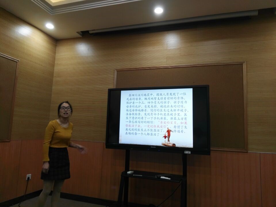 第二個環節是評課,上周胡靜老師上了一節公開課,胡老師首先講了一下自己的思路,然后余、陳兩位老師就存在的問題進行了點評,最后由徐老師對兩位老師的評課進行一個小結。