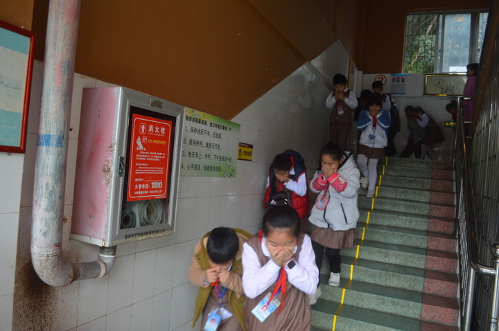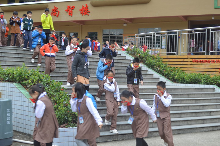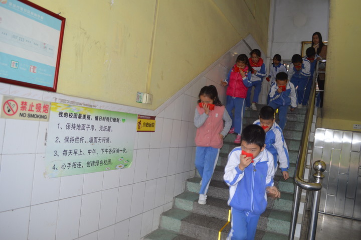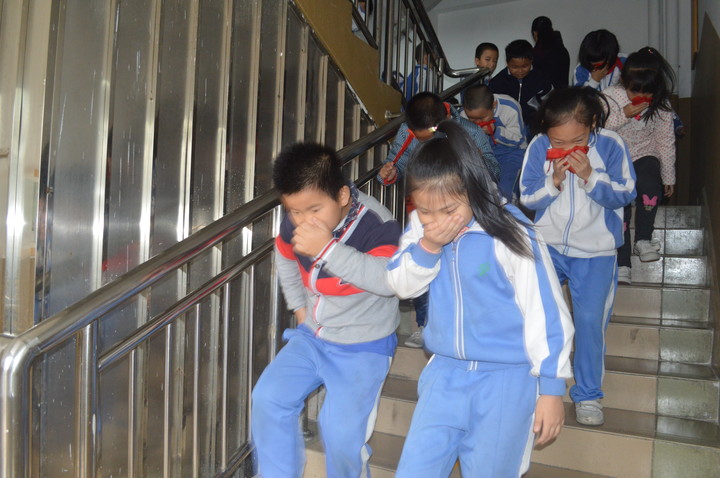 只見各樓梯口疏導(dǎo)人員、班主任到達(dá)指定崗位組織學(xué)生,捂著口鼻、彎著身子、緊貼墻壁,按指定的路線緊張有序地逃離了“火災(zāi)現(xiàn)場”,到達(dá)安全場地集合,全體師生的撤離僅用了2分30秒。撤離結(jié)束后,經(jīng)過清點(diǎn),52個(gè)班級(jí)的2500余名學(xué)生安全撤離到教學(xué)樓前的足球場、籃球場,疏散演練取得了圓滿成功。整個(gè)疏散演練過程迅速、安全、鎮(zhèn)靜,組織紀(jì)律嚴(yán)密,秩序有條不紊。