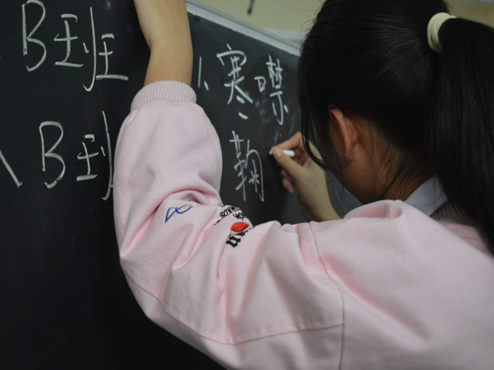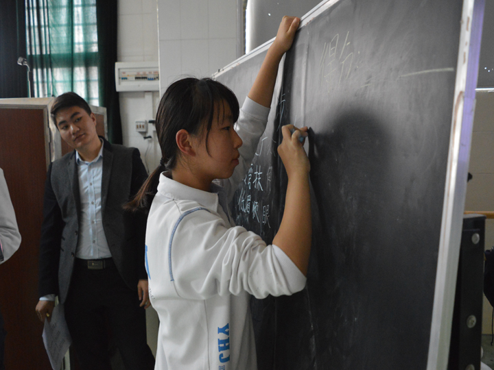 該活動秉承全員參與、公平公正的原則,每位學生發放相關試卷,上場比賽的學生在黑板上聽寫的同時,在場的學生通過試卷檢測自己的聽寫質量。通過兩個大環節,每個環節三組比賽,寫對一字得一分,累計班級所得分,結合班級整體賽場紀律形象分數,得出班級最終分數。