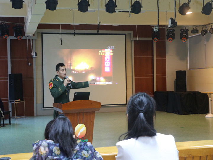 彭隊長先放幾段發生火災的視頻,接著舉深圳各區發生的火災具體的案例,用專業的角度分析,說明遇到火災時如何逃生自救進行,提出九鐘策略,教會老師如何面對火災,教會老師學會逃生。