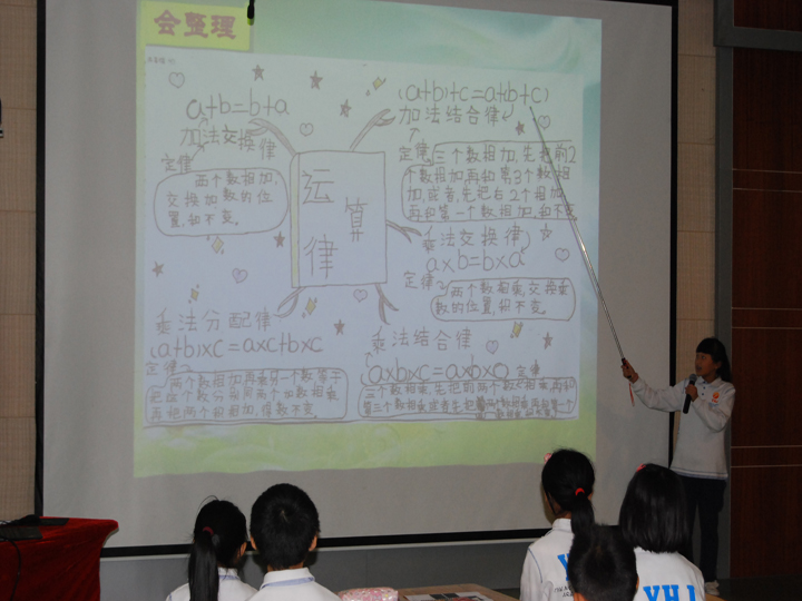 公明中英文學(xué)校的劉芬老師的復(fù)習(xí)內(nèi)容是四年級(jí)運(yùn)算律的、《復(fù)習(xí)與整理一》。劉老師以學(xué)生為主、提前讓學(xué)生把單元知識(shí)點(diǎn)繪制成思維導(dǎo)圖,讓孩子自主整理、梳理知識(shí)、區(qū)別各定律的應(yīng)用、建立知識(shí)網(wǎng)絡(luò)、提高課堂學(xué)習(xí)的高效性;在課堂中劉老師以生為本、小組討論、展示匯報(bào)、師徒結(jié)對(duì)的方式進(jìn)行教學(xué),激發(fā)學(xué)生的學(xué)習(xí)興趣;通過(guò)一起作業(yè)網(wǎng)的數(shù)據(jù)統(tǒng)計(jì)、收集學(xué)生平時(shí)的錯(cuò)題,查漏補(bǔ)缺,注意復(fù)習(xí)的針對(duì)性;攻難點(diǎn)巧運(yùn)用、注意復(fù)習(xí)的有效性。給大家呈現(xiàn)了堂高效的復(fù)習(xí)課。