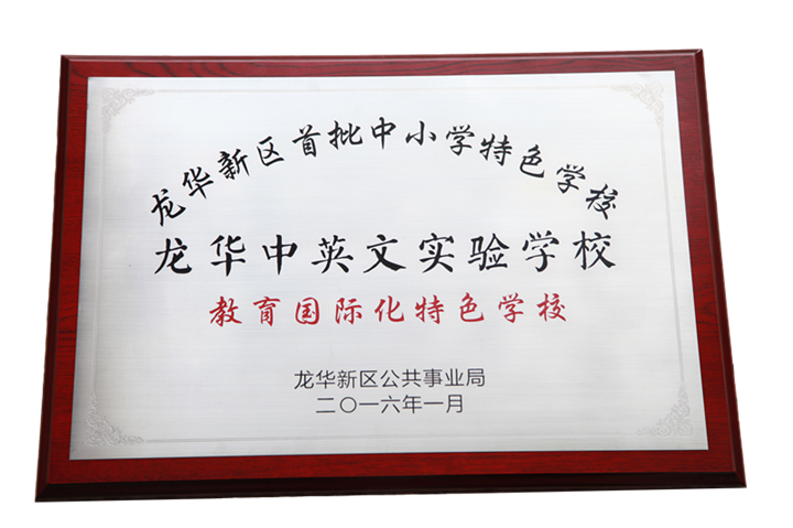深圳集團(tuán)、學(xué)校近三年的研究及探索,深圳市龍華中英文實(shí)驗(yàn)學(xué)校國(guó)際化特色建設(shè)成績(jī)斐然,2016年01月,深圳市龍華中英文實(shí)驗(yàn)學(xué)校獲得“龍華新區(qū)國(guó)際化特色學(xué)校”榮譽(yù)稱(chēng)號(hào)。