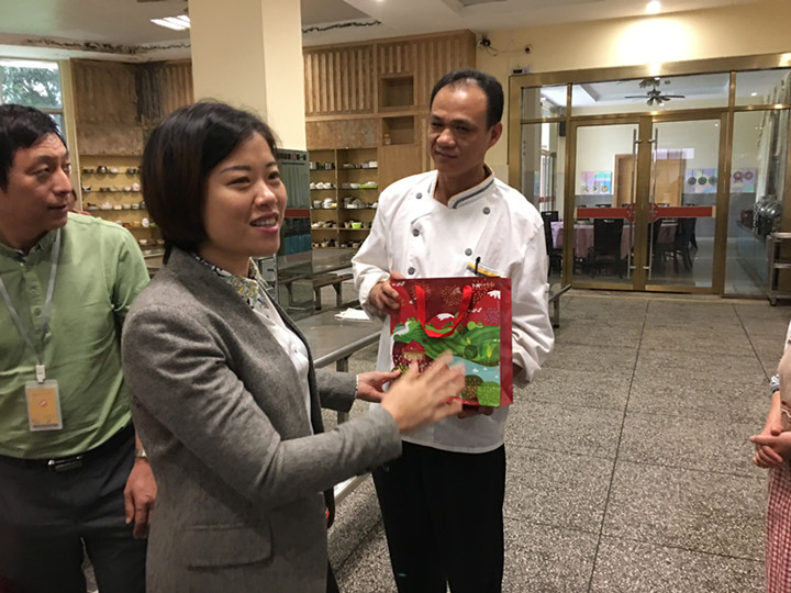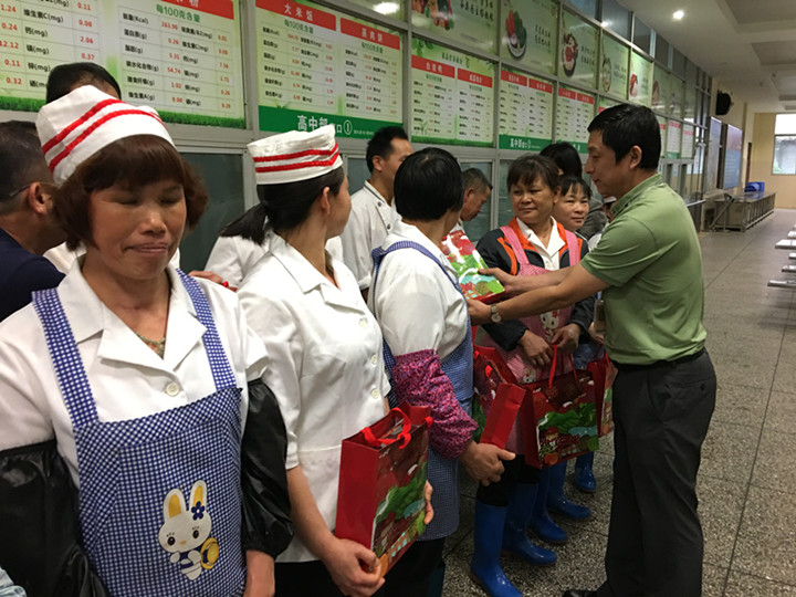 2017年3月31日下午,后勤服務(wù)公司食品采購部李莉萍總經(jīng)理親臨我校對食堂員工進(jìn)行表彰,并同鄧木金總經(jīng)理,龍華中英文實(shí)驗(yàn)學(xué)校王開利副校長給食堂員工頒發(fā)了獎品。