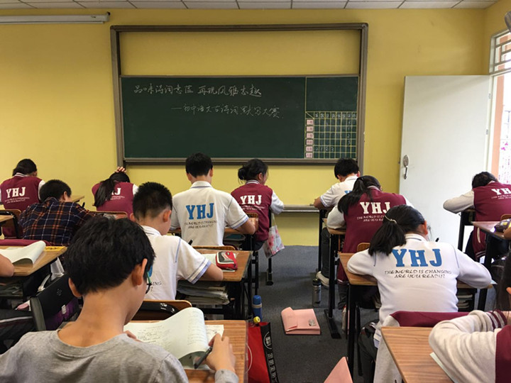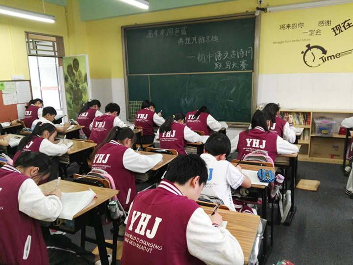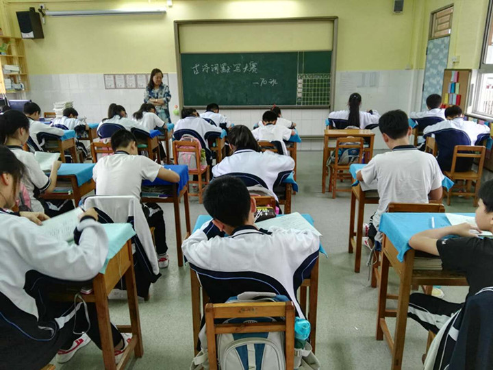 2017年4月5日下午,初中部全體學生在各自教室,開展了以年級為單位的“古詩詞默寫比賽”。比賽試題分為原文默寫、理解性默寫、課外詩詞默寫和古文化素養提升等題型。