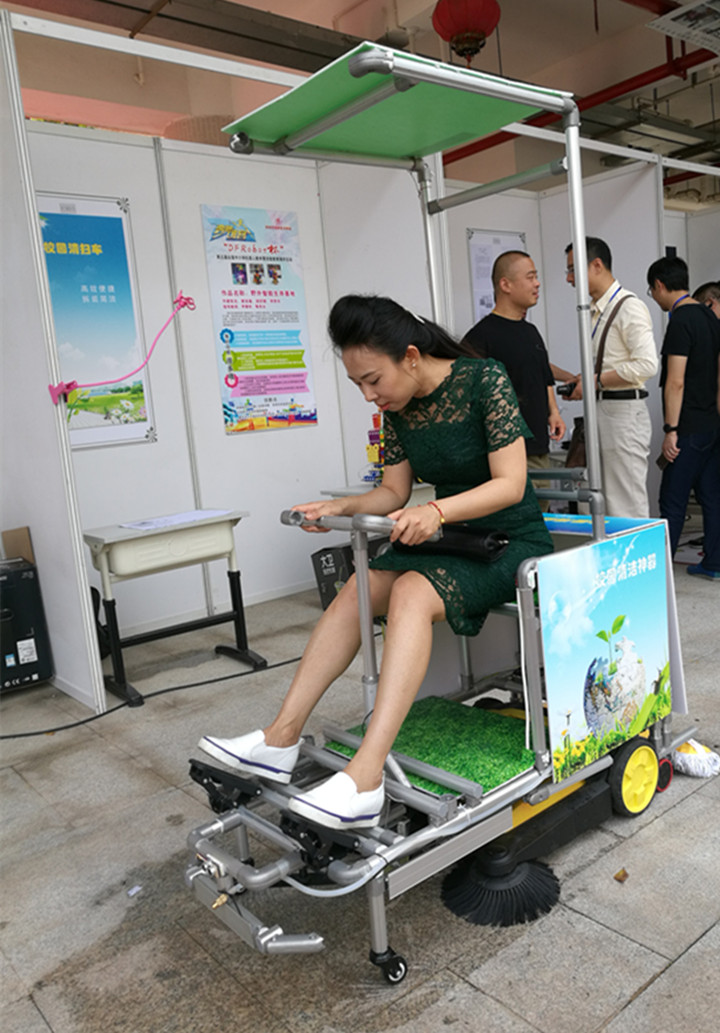 因為龍華中英文實驗學校是深圳大學授牌的《FEG智能無人車》創客實踐基地,作品制作過程中,運用的工程結構、3D設計、Arduino編程、激光切割等技術得到了深圳大學的相關老師與技術指導,該車可以支持有人駕駛及手機遠程無人控制等。《校園清掃車》可以實現校園落葉垃圾清掃、室內球場的托地清潔、足球場草坪修剪、太陽能充電等功能。是一項節能、環保、多功能的創客作品。