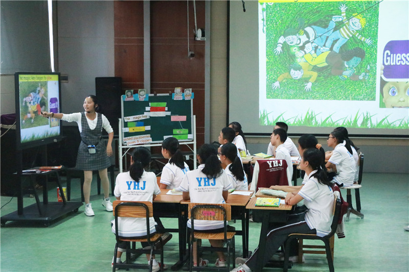 不同于常規教材的教學,楊老師運用《典范英語》中故事給學生們上了一堂生動有趣的英語課。故事話題是我們從小就聽過的睡美人(Sleeping Beauty)的故事。一段睡美人視頻的播放又引出了學生們的童話記憶,也對這個故事充滿好奇:它會有什么不一樣呢?楊老師在課堂上不斷讓學生讀,聽和說,強化學生的口語能力。故事脈絡的總結與復述,加強學生邏輯表達能力。最后楊老師讓學生自己發揮想象,想出不同的方法來喚醒公主,學生的表現的想象力都很精彩。