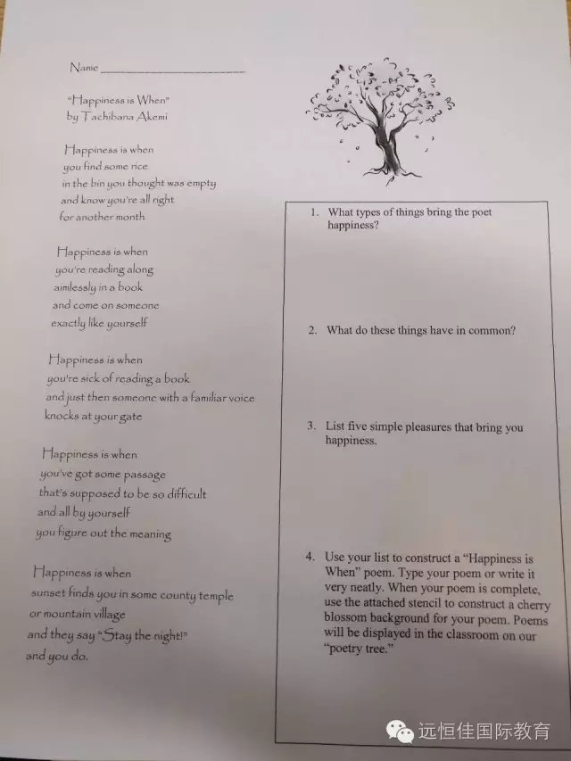 Southlands的課程安排也進一步的深入。低年級的同學上課伊始,老師為同學們精心挑選了一些簡單的美國詩詞。通過對詩詞的學習,了解一些英文中的隱喻,借喻和比擬的表達方式。同時,同學們還能學習一些關于詩詞寫作的結構,分段,以及一些寫作規則。
