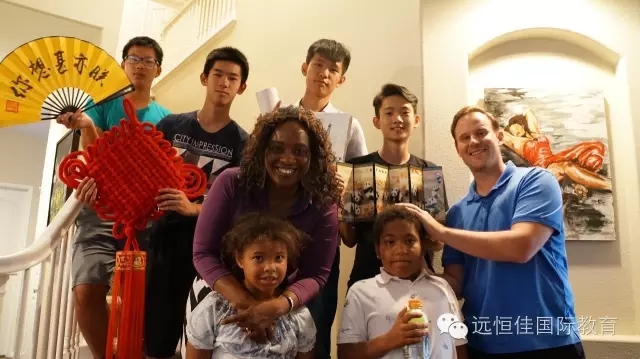在學校學習的兩周時間里,同學們的衣食住行都由美國的寄宿家庭的爸爸媽媽精心照顧,同學們鍛煉了英語,了解了美國文化。在準備進入營地的前一天晚上,同學們依依不舍地和自己的寄宿家庭告別,并送上了他們為寄宿家庭精心準備的具有中國特色的禮物。