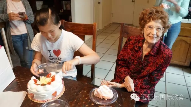 7月16日周六,是屬于孩子們與寄宿家庭相處的第一天。同學們都和自己的寄宿家庭父母一起參加不同的活動。下午,領隊的老師們來到南岸基督學校寄宿家庭的Shelley家庭,探訪住在這里的4名中國同學:Yvonne, Abby, Sarah,Aily以及1名在美留學的學姐Tracy。而今天,恰好也是此次參團的Yvonne同學的生日。全家人準備給孩子過生日派對。一進門,老師們就受到了寄宿家庭媽媽Shelley的熱情歡迎,她帶著大伙參觀同學們各自的房間,一一介紹誰曾經住在這里,詳細地介紹著家庭的歷史。寄宿家庭還住著一名91歲和藹的老奶奶,是主人Shelley的母親,大家都親切地叫他Grandma(奶奶),聽到今天是小Yvonne的生日,老人家激動地站起來為Yvonne祝賀,并且即興要用鋼琴為 Yvonne同學演奏一曲生日歌。隨后,同學們和寄宿家庭分享豐盛的晚餐,并得到美國家庭的祝福。