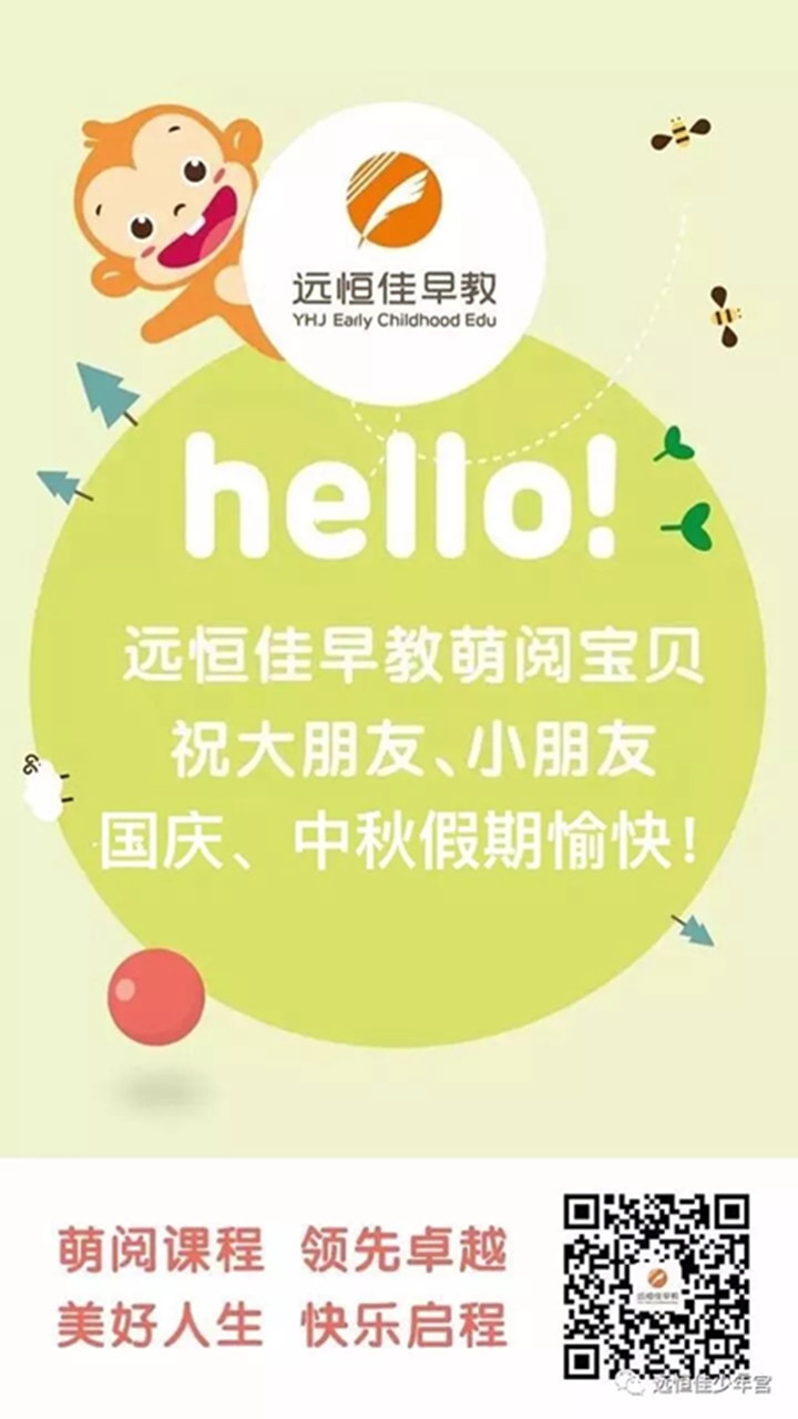 親愛的家長,您們好!在這秋高氣爽的季節,我們即將迎來國慶和中秋佳節,值此雙節來臨之際,遠恒佳早教少年宮中心全體教師誠摯的邀請您參加《喜迎中秋 與愛同行》活動。希望您與寶貝共度歡樂時光!