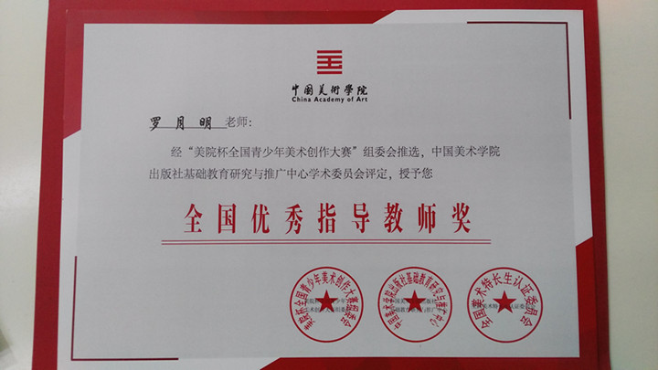 羅月明老師負責遠恒佳少年宮創(chuàng)藝精品大師班的主教,擁有10年的少兒美術教學經(jīng)驗,擅長校園整體環(huán)境創(chuàng)設,曾獲全國青少年兒童書畫攝影展覽展示活動“優(yōu)秀美術教師”。獲得“世界華人幼兒創(chuàng)意美術大賽指導金獎".多次組織學生參見全國各項美術比賽。其中平均80%學生獲得一 二 三等獎的優(yōu)異成績。具有豐富的實踐經(jīng)驗。