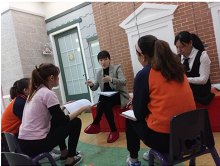 時間: 2018-04-23 作者:yuanhengjia 閱讀次數: 2853教研活動是教學工作的先導,是提高保教質量,提高教師業務素質的關鍵所在,也是提高教師反思能力的一條有效途徑。遠恒佳早教在集團學前教育管理中心教授的專業引領,每月教研員的到店視導,定期的師資培訓,不僅是門店的培訓還是到總部集中的學習,請進來的走出去的,老師們利用休息的時間來學習,成長,豐富自己,提升自己。為了是讓老師以專業的技能面對我們的孩子,受益我們的孩子,影響我們的家長。本月,將會對經典閱讀展開細致的教研活動。本周黃林芝教研員的到來,面對面的解決老師們的疑問,展開討論,提出建議,讓老師們一次次的在教研中更快的成長。