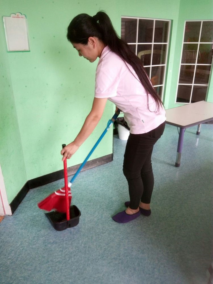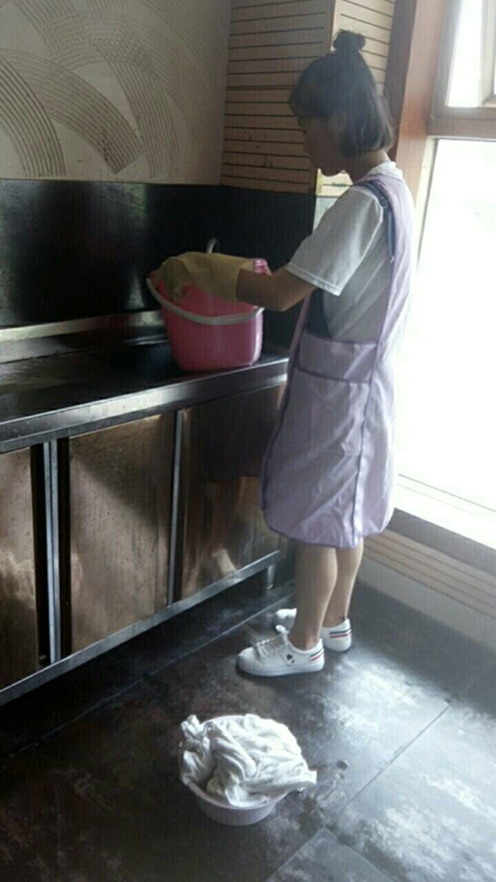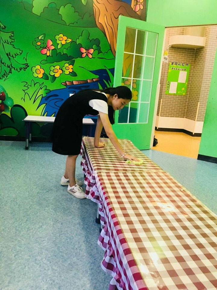 5、每天用消毒水拖教室的地板、公共區域的地板、餐廳的地板,再用清水拖一遍。
