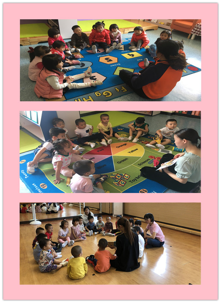 這是我們半托班跟全托班的寶貝,在開展經典閱讀的課程,嘻嘻,每個寶寶都好認真的聽老師講繪本。