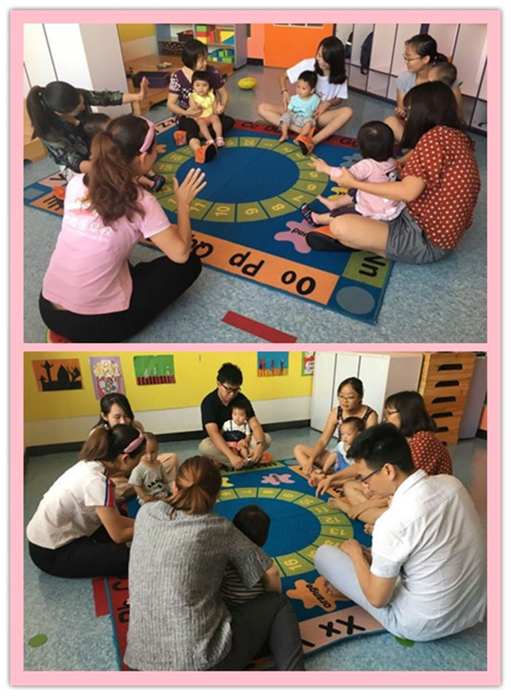 這是我們早教中心最小的班,親子班,認真看老師操作的時候的表情,是不是好可愛呢!