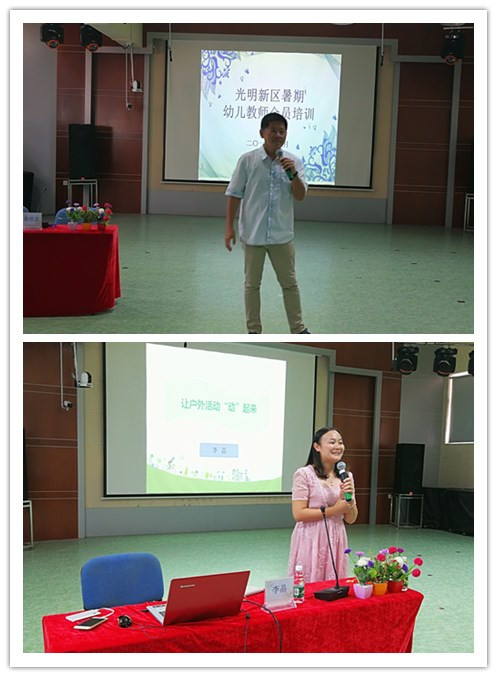 美籍華人教育專家蔡偉忠博士《在行為中落實(shí)師德》的講座,是關(guān)于教師職業(yè)幸福感的心路歷程分享,其中“改變不了環(huán)境,可以改變心態(tài);選擇不了父母,可以選擇朋友;決定不了智商,可以提高情商”三句話,讓在場(chǎng)的老師們受益匪淺。蔡偉忠博士的講座即生動(dòng)有趣又很接地氣,與在座的學(xué)員產(chǎn)生積極地互動(dòng)與共鳴;教科研中心朱文靜教研員的《幼兒園環(huán)境的規(guī)劃與利用》講座,幫助老師們規(guī)范幼兒園室內(nèi)外環(huán)境的合理規(guī)劃、如何整合園所現(xiàn)有資源提供了科學(xué)的指引;孫曼麗老師的《美術(shù)活動(dòng)與藝術(shù)空間的創(chuàng)設(shè)》分享,讓全體老師受益匪淺,產(chǎn)生立刻想回到幼兒園對(duì)自己園的美術(shù)室進(jìn)行改造的沖動(dòng);段帆老師《一日生活皆課程》的講座,再次幫助老師們梳理生活中的教育契機(jī)與教育方法;趙永忍老師的《幼兒體能活動(dòng)的設(shè)計(jì)》分享,現(xiàn)場(chǎng)試教,生動(dòng)有趣,學(xué)員感嘆:沒(méi)想到一節(jié)體能活動(dòng)竟然可以如此豐富有效;唐艷老師的《一日活動(dòng)的組織策略》講座,為老師們開(kāi)展幼兒園日常各類活動(dòng),提供了科學(xué)的指導(dǎo);而來(lái)自公明第二幼兒園的李晶園長(zhǎng)的《讓?xiě)敉饣顒?dòng)“動(dòng)”起來(lái)》的講座,從戶外活動(dòng)的重要性、戶外活動(dòng)的組織策略進(jìn)行了分享學(xué)習(xí),案例豐富,實(shí)操性強(qiáng),讓教師們充分認(rèn)識(shí)到戶外活動(dòng)的組織同樣重要,同時(shí)了解從環(huán)境分設(shè)到活動(dòng)組織的有效策略。