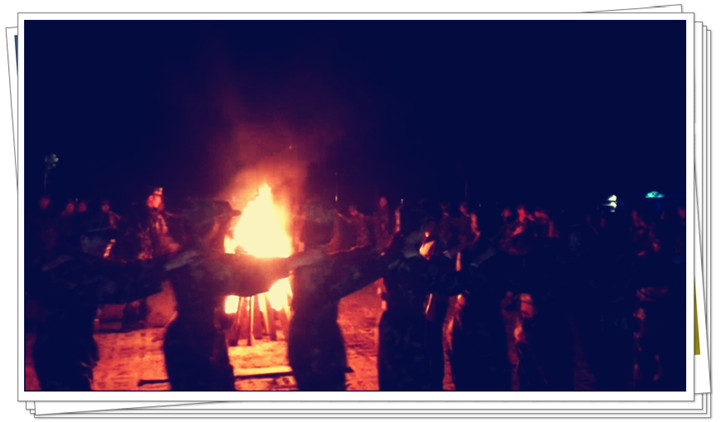 來到的第一天晚上的晚餐,老師們自己動手開小灶,分工合作、展示廚藝!飯后不久篝火晚會開始,大家圍著火堆轉,想盡辦法讓教官表演,老師們都格外歡樂: