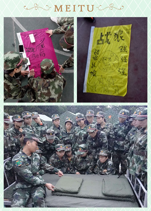 周六這一整天的活動讓老師們即有驚險刺激,又有挑戰(zhàn)和毅力,也有感動和眼淚。早晨起來學習疊“豆腐塊”被子、做早操、學習隊列軍姿、拉歌比賽、信任背摔、下午CS槍戰(zhàn)和“畢業(yè)墻”: