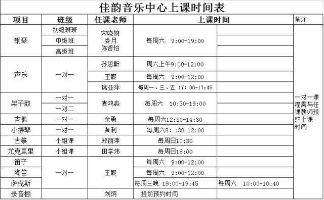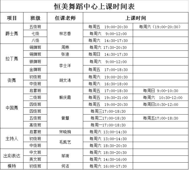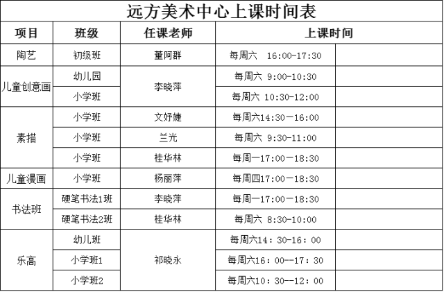 遠恒佳國際教育城藝術中心2017春季課程安排