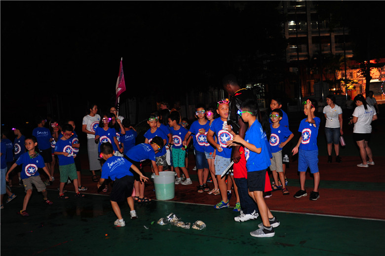 本次“時間裂痕之戰”活動是為了鍛煉孩子們的意志力和團隊協作力,原計劃18日黎明之際開始戰斗,因為天氣原因推遲到了20日0點。活動開始之前校園的操場上已經被分成了四個區域,所有小戰士們分配到不同區域現場制作彩虹彈藥,攻擊外星怪獸。每當小戰士被外星怪獸擊中需要到旁邊的帳篷休息五分鐘才能重返戰場。等小戰士們戰勝外星人,就可以到美國對長處拿信封線索,去尋找時光機碎片。