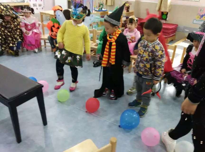 10月31日,一大早,孩子、老師們都一番精心打扮到幼兒園。有的孩子打扮成小惡魔的模樣,有的孩子打扮成白雪公主,有的孩子“變身”超人,還有的孩子“變身”海盜……外教安德里斯和中教黃春影老師到各個(gè)班級(jí)做萬(wàn)圣節(jié)游戲。這邊落落大方的小公主遇上了英俊瀟灑的小國(guó)王;那邊小天使怎么會(huì)和海盜玩在一塊了?各種形象仿佛讓幼兒園穿越到魔怪小天地,十分熱鬧,孩子們玩得不亦樂(lè)乎。萬(wàn)圣節(jié)當(dāng)天整個(gè)幼兒園都是孩子們的歡聲笑語(yǔ)。