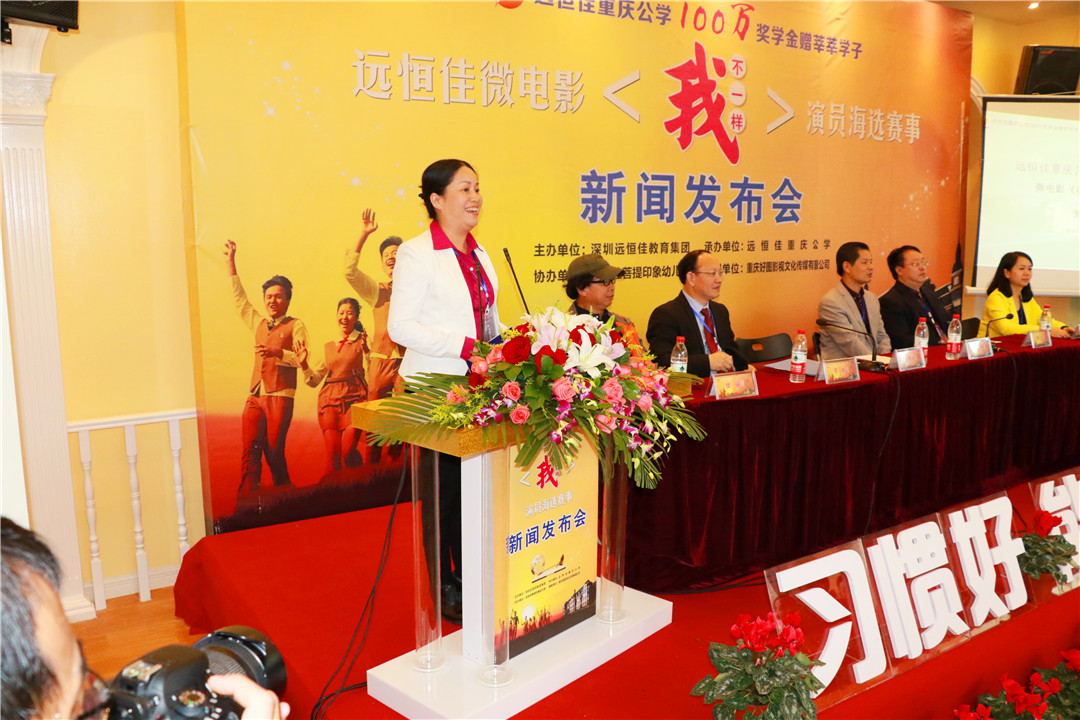 深圳遠恒佳教育集團副總裁、新聞發言人程琳娜在儀式上介紹了微電影的拍攝目的及賽事安排情況。她表示,遠恒佳重慶公學來自于改革開放的前沿陣地——深圳,學校秉承集團“美好教育”的辦學思想,以“遠?恒?佳”為文化特色,以培養具有民族情懷和國際視野的優秀公民為己任,致力于辦一所“重慶領先、全國一流、世界知名”的,以“小班化、個性化、國際化”著稱的名校。此次通過微電影的海選形式尋找最美學生代言人主要是給廣大的學子提供一個多方位的選擇平臺。此外,影片中還將宣傳長壽和長壽湖,給觀眾展現遠恒佳重慶公學的優美教學環境、一流辦學條件以及先進的教育理念,讓社會各界和廣大家長能夠更深刻地了解遠恒佳公學。