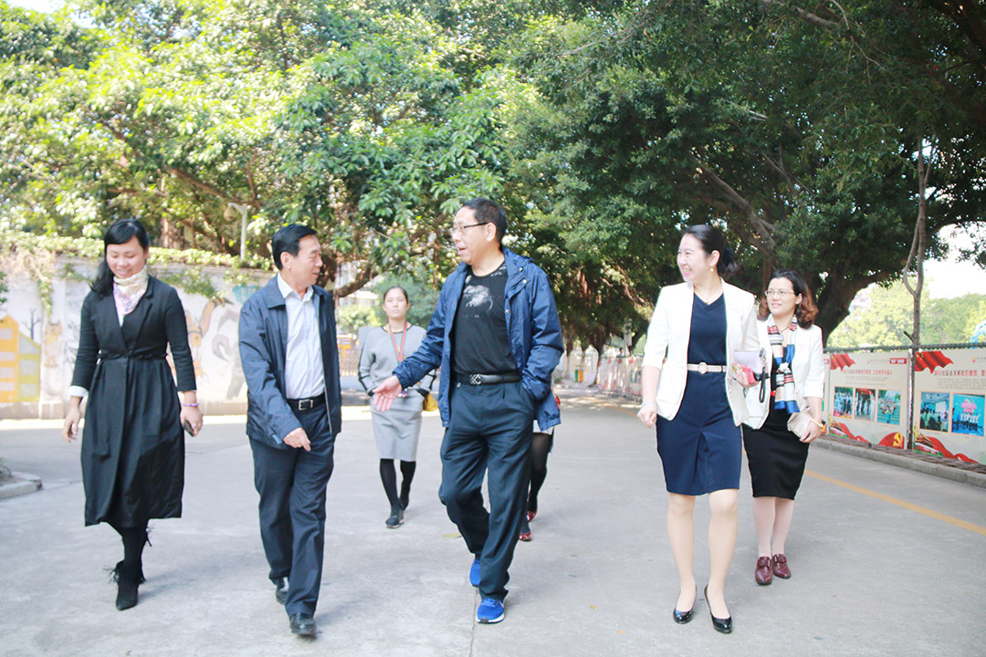 接著,王教授一行來到龍華中英文實(shí)驗(yàn)學(xué)校參觀,在卜祥林校長(zhǎng)的帶領(lǐng)下,王教授一行興致勃勃的參觀了學(xué)校素質(zhì)教育成果展示區(qū)、社會(huì)資源中心、國(guó)際交流中心等地,詳細(xì)了解了學(xué)校國(guó)際化教育發(fā)展情況。王教授對(duì)學(xué)校的辦學(xué)特色和辦學(xué)理念非常認(rèn)可,希望學(xué)校越辦越好,培養(yǎng)出更多優(yōu)秀學(xué)子。