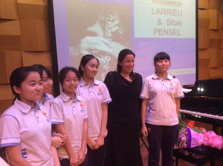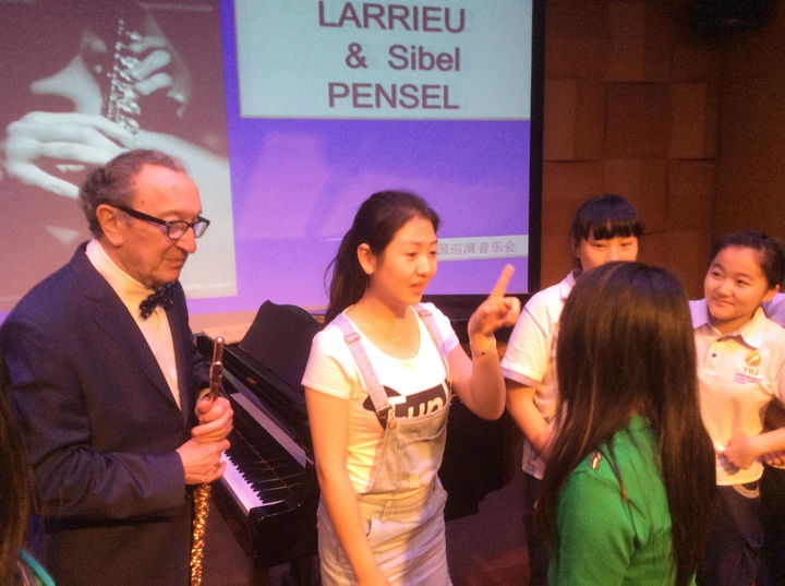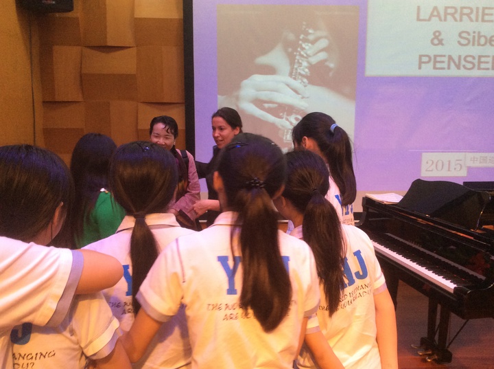 長笛是現代已知的樂器家族中最古老的成員之一,其音色柔美清澈,音域寬廣,演奏技巧華麗多樣。2015年4月22日晚,法國長笛大師馬克桑斯·拉厄爾和西貝爾·潘瑟在深圳大學師范學院音樂廳巡演,深圳市龍華中英文實驗學校組織初中實驗班學生親臨現場,享受了這次音樂大餐,進行了一次心靈與長笛的親密對話。