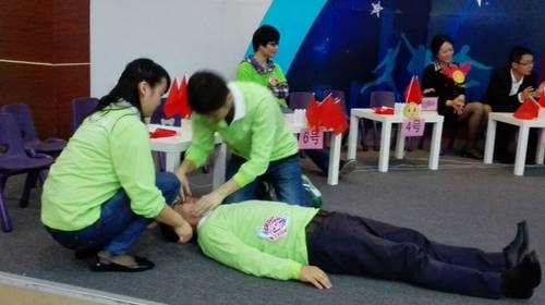 我園代表現場演示“心肺復蘇”急救處理方法。