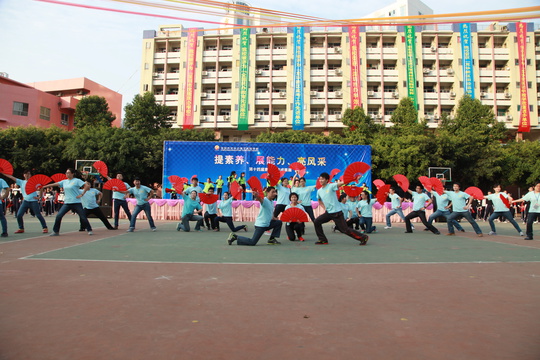 小學(xué)健美操隊(duì)的啦啦操《炫舞派對(duì)》,初中學(xué)生社團(tuán)的《give me all your love》,初中八年級(jí)的扇操《扇舞華章》,高中學(xué)生社團(tuán)的啦啦操《扇行天下》,國(guó)際部學(xué)生拉丁舞《拉丁炫風(fēng)》,教工社團(tuán)的串燒《任性的師舞年華》等大氣磅礴,展現(xiàn)了我校師生“全員學(xué)藝”的靚麗風(fēng)采;舞蹈《上學(xué)了》、《一起來(lái)讀書(shū)》、《快樂(lè)舞極限》、《爵士舞》、《瑤族長(zhǎng)鼓舞》等舞蹈亮點(diǎn)頻出,精彩紛呈;英語(yǔ)童話劇與英語(yǔ)才藝表演國(guó)際范濃厚,體現(xiàn)了我校學(xué)生良好的英語(yǔ)水平和學(xué)校良好的英語(yǔ)特色;《歌曲聯(lián)唱》、歌舞《春天的芭蕾》、手語(yǔ)表演《幸福永遠(yuǎn)》更是聲情并茂,把活動(dòng)推向了新的高潮。