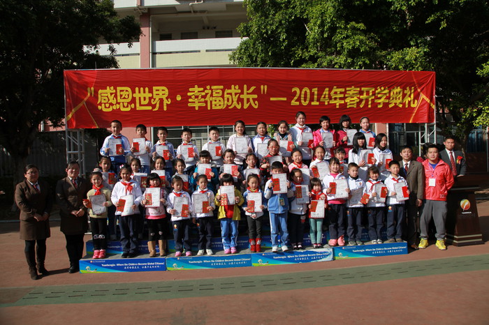二是創新內容,活動以《感恩世界?幸福成長》為主題,結合龍華街道辦事處2014年“學會感恩”的民族精神代代傳活動,全面體現關心下一代,關心學生成長的主題,通過感恩活動的開展,使學生常懷一顆感恩的心,感謝祖國,感謝世界,感謝父母,感謝學校,感謝老師,能快樂地學習和生活,幸福地成長;并對上學期在“習慣好、能力強、成績優”等“三·三·四綜合素質培養”中表現優秀的學生頒發“遠恒佳獎學金”。