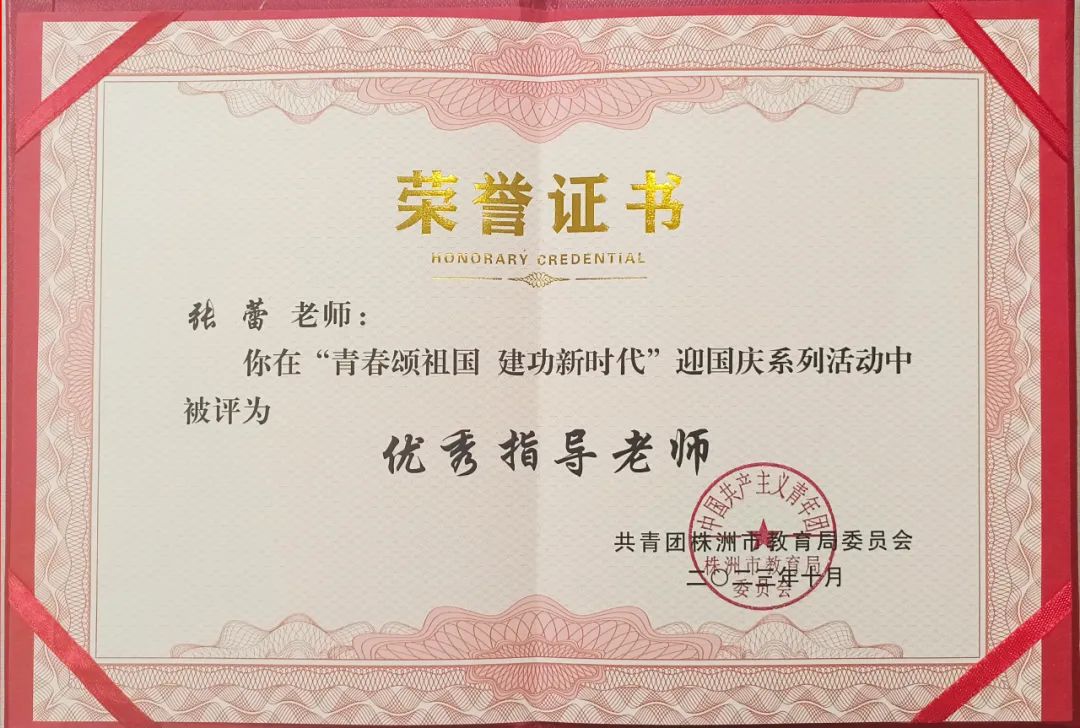 時間: 2023-11-03 作者:yuanhengjia 閱讀次數: 1569近日,株洲市教育局團委在直屬學校中開展的“青春頌祖國,建功新時代”迎國慶系列活動評比揭曉,我校劉麗娟、蔡沁晨辰、馮柔嘉、范幸鉉、楊雨萱等五名同學的4件作品在“巧手剪紙慶國慶,同心祝福獻祖國”的剪紙比賽活動中分別榮獲高中組一、二、三等獎,美術老師張蕾被評為優秀指導老師。
