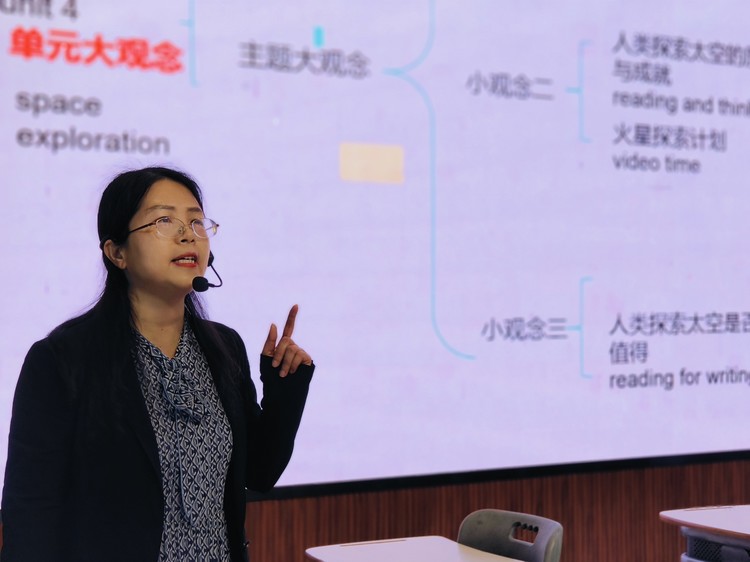 接著,長(zhǎng)壽中學(xué)譚曉娟老師說課《Unit 4 Space Exploration ——Listening and Speaking》。譚老師深刻地分析了單元大觀念教學(xué)和實(shí)際教學(xué)金幣貼合的實(shí)際,特別是針對(duì)聽力教學(xué)方面,提出了自己的真知灼見。
