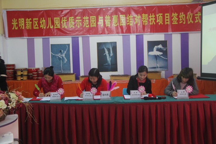 光明新區舉行市優質特色示范園與新區普惠園結對幫扶簽約儀式