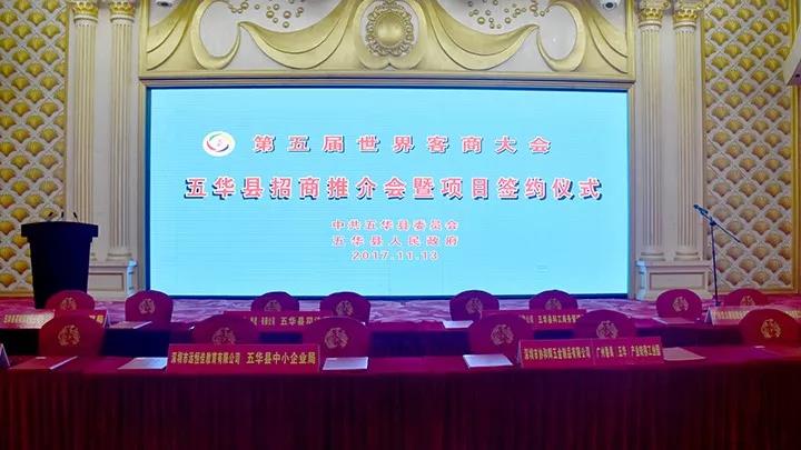 時間: 2017-11-19 作者:yuanhengjia 閱讀次數: 60372017年11月13日上午,第五屆世界客商大會五華招商推介會暨項目簽約儀式在廣東省梅州市五華國際酒店隆重舉行。